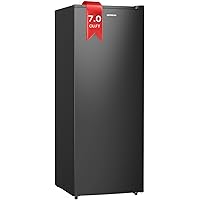 Upstreman 7.0 Cu.Ft Upright Freezer, Large Capacity Garage Ready Black Freezer with 5 Adjustable Shelves, Convertible Refrigerator/Freezer, Reversible Door for Home, Basement, Apartment (Black)