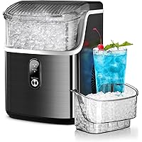 Kismile Nugget Ice Makers Countertop,Portable Ice Machine with Crushed Ice, 35lbs/Day,Self-Cleaning,One-Click Operation for Home Use(Silver)